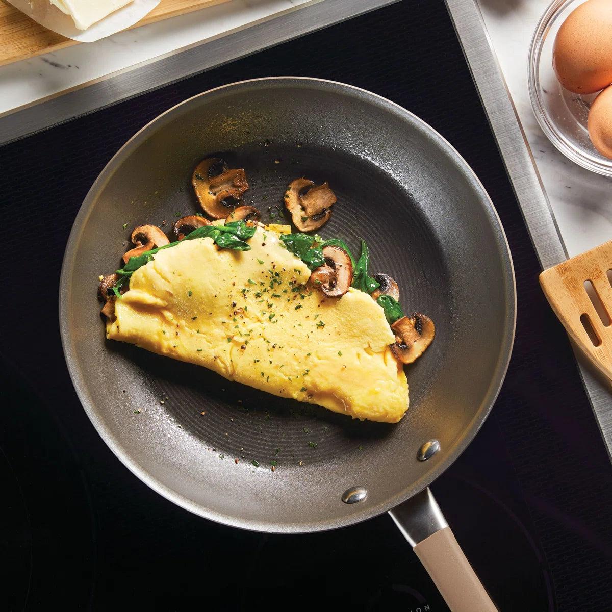 - Stainless steel base: Enhanced durability that's suitable for all stovetops, including induction.