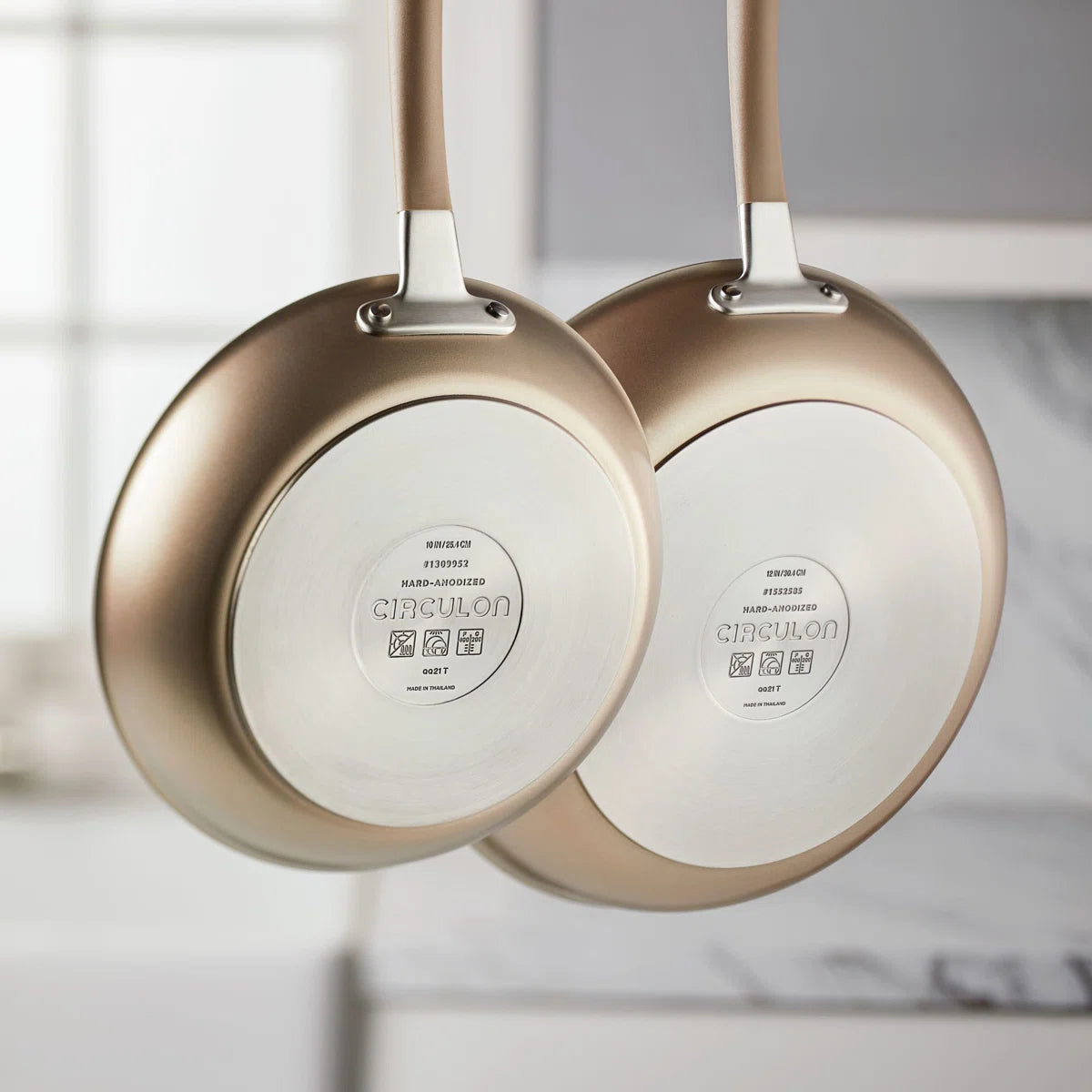 - High-low circles: This versatile kitchen cookware set features an ultra-durable nonstick and high-low circle design to significantly reduce surface abrasion for an exceptional nonstick surface.